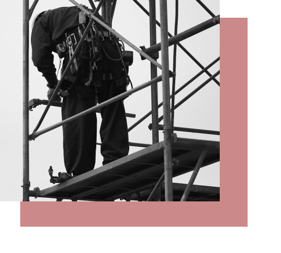 ビルや橋梁、倉庫や発電所など、様々な構造物の建設に必要となる、足場・安全設備を設置します。外壁の塗装や補修のための工事にも必要となります。当然足場の解体も含まれます。